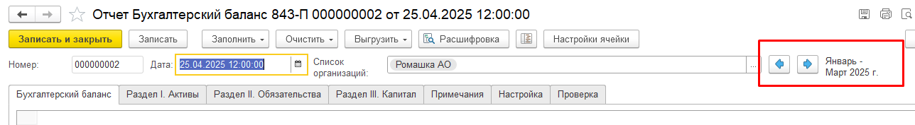 Для первого заполнения нового отчёта используйте команду «Заполнить», чтобы загрузить все актуальные данные. Если позже потребуется обновить только часть информации (например, отдельные таблицы или примечания), воспользуйтесь функцией «Заполнить текущую закладку».